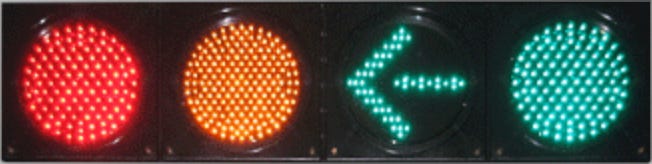 For some reason, however, in Korean, traffic lights are arranged horizontally with the left turn signal at intersections not located in the same spot as the green light but to the right of the yellow light.