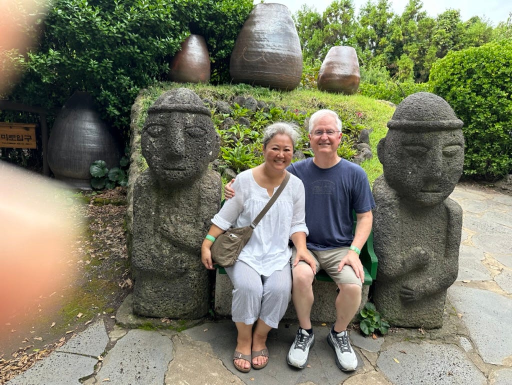 I stopped to take a selfie with this very popular gentleman whose effigy is all over Jeju Island. It’s called a 돌하리방 (Dol hareubang). According to Jeannie, he’s a man who waited for his daughter to return from the sea and he waited so long, he turned to stone. I can say from not entirely dissimilar experiences, that I know how he feels. We can’t find any sources to backup Jeannie’s story that she claims she hear on NPR but it’s a good one so that’s enough for me.