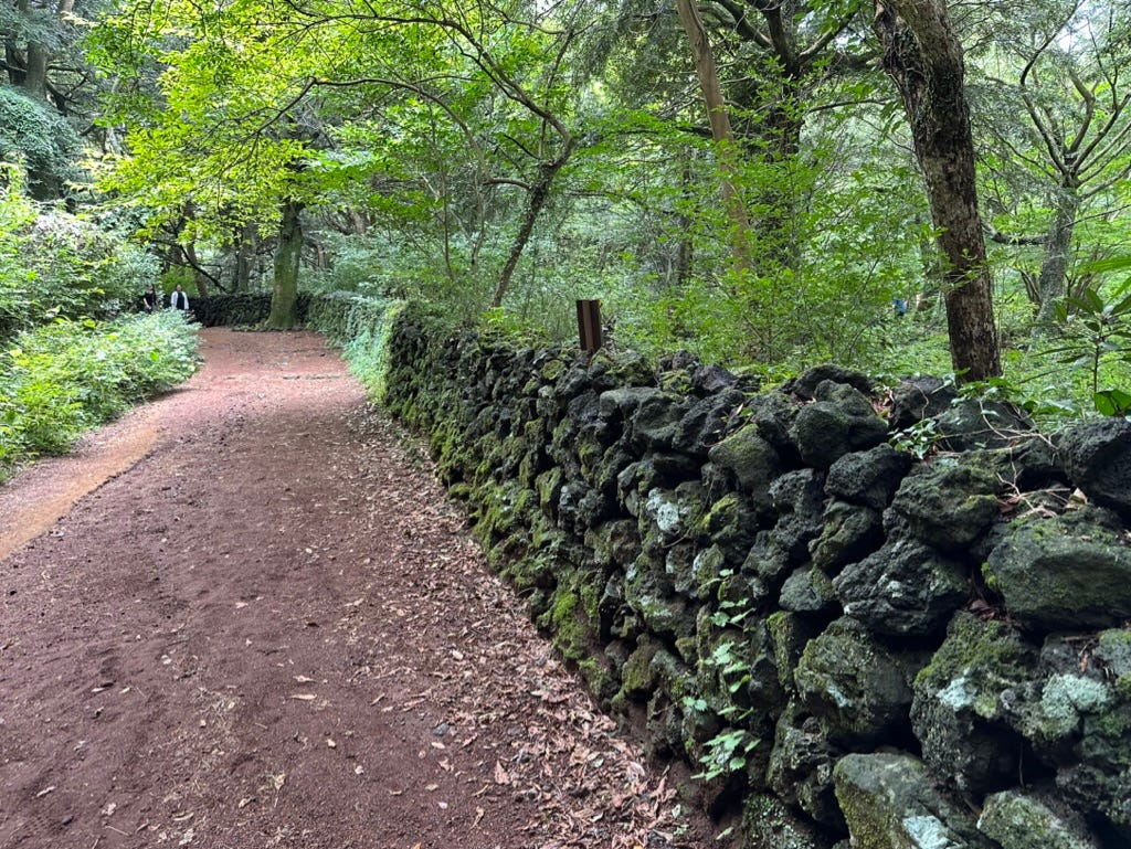 Yes, that stone wall is made of lava rock. It seems that on Jeju Island, nearly everything that can be made of stone is made of lava rock.