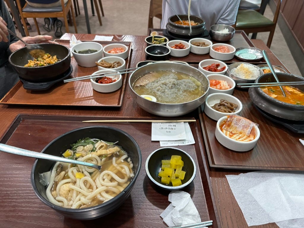 Getting there in our case involved flying from Busan’s Gimhae International Airport to Jeju International Airport. Apparently you can take a ferry but these ferries don’t have seats. If I’m a passenger, I require a seat. If I am required to sit on the floor, I’m not a passenger, I’m cargo. We arrived at Gimhae early to make sure we wouldn’t miss our flight. Since it was lunch time and so much of this tour of South Korea appears to be about eating, we had lunch at the airport. Now, I know what you’re thinking. Airport food. Yeah, it’s never more than sustenance and then barely that, right? That’s been my experience in every airport I’ve visited (which is many both domestically and internationally) except in South Korea. This was lunch at the airport and for most of you it’s likely indistinguishable from the pictures I have posted of extra-airport food.