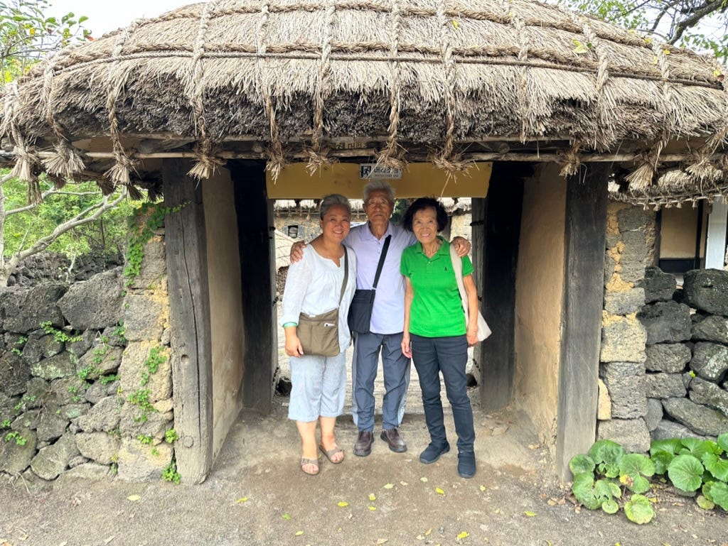 As we drove up the coast (or as we drove out of Jeju City because who am I kidding, the sandwich didn’t last that long) I veraciously gobbled down my eggcellent sandwich. We drove to a spot about 1/3rd of the way around the island where an old village of houses made from volcanic rock, mud and thatched roofs has been lovingly restored.