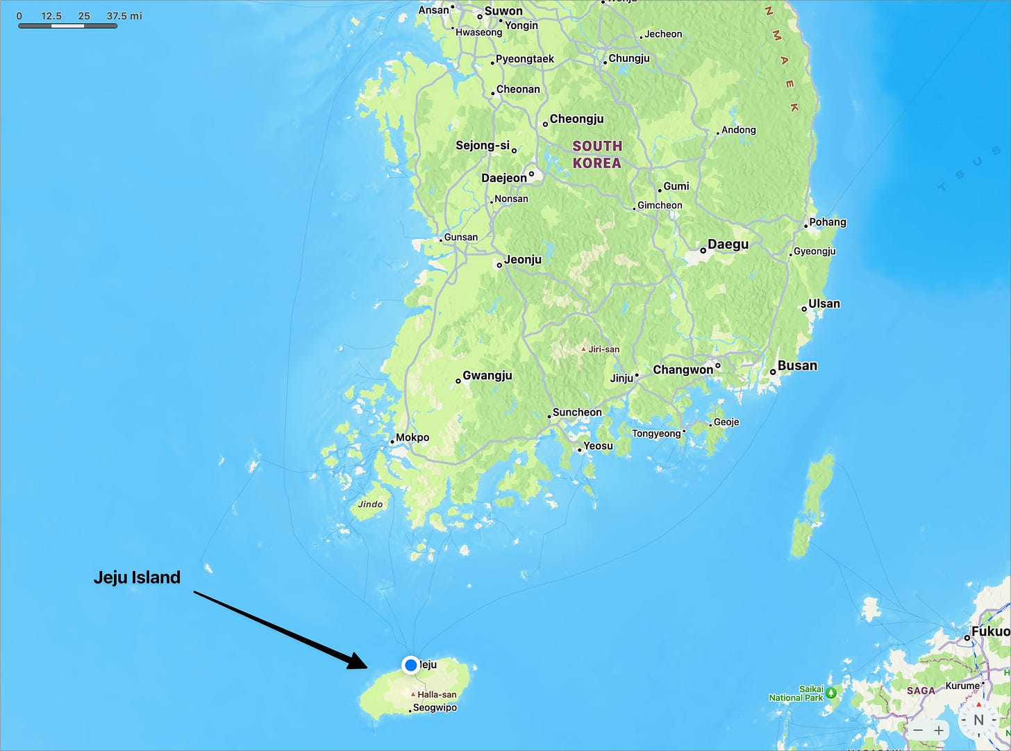 The following day we decided to continue the drive around the perimeter of the island which took longer than we thought. I had Apple Maps on the panel in the car showing where we were and where we were going. However, Apple has not quite gotten around to adding speed limit data for Jeju Island and there are not enough iPhones here for them to display traffic data either. As a result, the estimates as to how much time it will take to reach your destination and what time it will be when you arrive there are not at all accurate as it turns out.